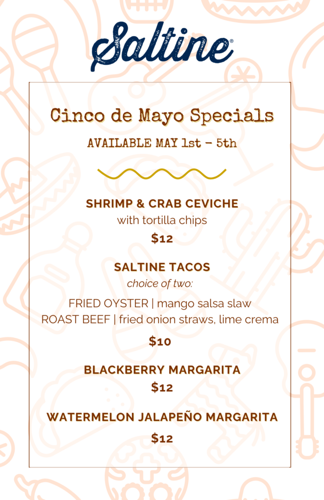 Join us at Saltine as we toast to Cinco de Mayo with a week of food + drink specials!